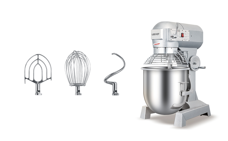 Our 30QT commercial stand mixer is designed for professional kitchens, featuring a 30qt stainless steel bowl and a powerful 1250W motor. Engineered for bakeries, restaurants, and hotels, it comes with three mixing attachments (dough hook, flat beater, wire whisk) to handle a variety of mixing needs.