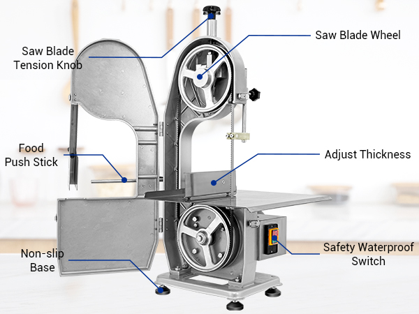 Built for high-volume meat processing, the JG-280 bone saw features a powerful 1500W motor, cutting up to 1,100 lbs of frozen meat and bones per hour. With adjustable cutting thickness, a heavy-duty stainless steel table, and enhanced safety mechanisms, this machine is ideal for large butcher shops, meat processing plants, and industrial kitchens.